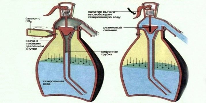กาลักน้ำอุปกรณ์สำหรับการเตรียมเครื่องดื่มอัดลมที่หลากหลายนั้นค่อนข้างง่ายและเข้าใจได้ง่าย การออกแบบของเครื่องใช้ในบ้านที่เป็นที่นิยมนี้รวมถึงองค์ประกอบต่อไปนี้: