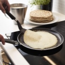 ด้านล่างของจานประเภทนี้มักหนาและสม่ำเสมอ ด้วยวิธีนี้มันจะกลายเป็นอบแพนเค้กอย่างสม่ำเสมอ มักจะมีการเคลือบแบบไม่ยึดเกาะซึ่งช่วยให้คุณปรุงอาหารได้โดยไม่ต้องเติมน้ำมัน มันง่ายมากที่จะล้างผลิตภัณฑ์ แต่อย่าใช้แปรงขัด