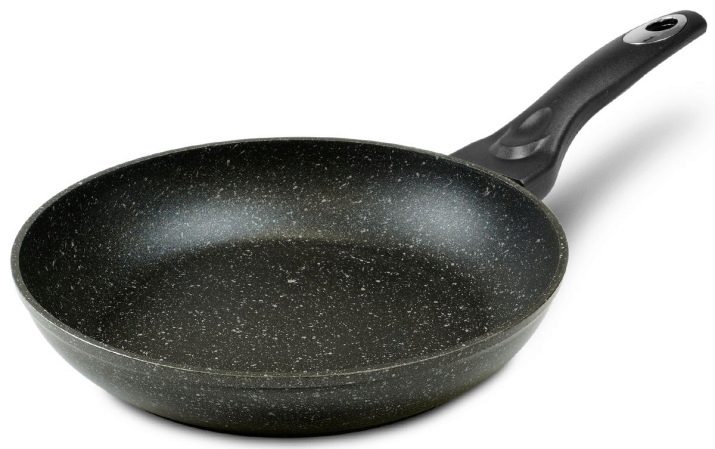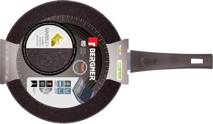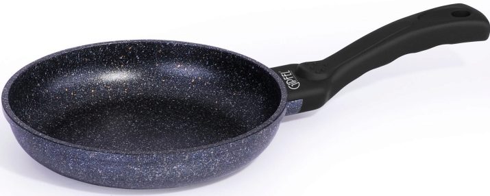 พื้นผิวขรุขระของสีเข้มมีจุดไฟขนาดเล็กเป็นลักษณะของเครื่องหินอ่อน อายุการใช้งานขึ้นอยู่กับความหนาของการฉีดพ่นโดยตรง การเคลือบแบบไม่ยึดเกาะถูกเคลือบด้วยแผ่นฟิล์มที่ทนทานพร้อมเศษหินอ่อน ผู้ผลิตอนุญาตให้แม่บ้านใช้อุปกรณ์โลหะร่วมกับกระทะดังกล่าว การเกาด้านล่างอย่างจงใจไม่จำเป็นอย่างไรก็ตามจากการพลิกอาหารในระหว่างการปรุงอาหารการเคลือบจะไม่ได้รับความเสียหาย