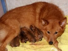 การทดลองครั้งแรกเกี่ยวกับการผสมพันธุ์พันธุ์ที่เรียกว่า Karelian - Finnish husky ได้ดำเนินการมานานกว่า 100 ปีแล้วในตอนต้นของศตวรรษที่ 20 การผสมแบบผสมเป็นการผสมผสานคุณสมบัติของพ่อแม่ - สุนัข Olonets และ Karelian ในเชิงพาณิชย์กับฟินแลนด์ Spitz ปศุสัตว์ที่เกิดขึ้นมีสีแดงสดใสและมีประสิทธิภาพสูงกว่าผู้ผลิตดั้งเดิมอย่างมีนัยสำคัญ เพื่อหลีกเลี่ยงการผสมข้ามพันธุ์ที่เกี่ยวข้องอย่างใกล้ชิดในการผสมพันธุ์เลือดของฟินแลนด์ Spitz ถูกใช้บ่อยที่สุดบันทึกไว้ในผู้ผลิตแล้วในฐานะตัวแทนของสายพันธุ์ใหม่