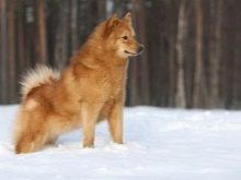 ชาวกะเหรี่ยง - ฟินแลนด์ดูน่าประทับใจ ผมสีแดงปุยมีสีน้ำผึ้งอบอุ่นดวงตาสีน้ำตาลแดงหรือสีดำให้การแสดงออกถึงปากกระบอกปืน ขนาดกะทัดรัดและความสูงต่ำที่เหี่ยวแห้ง - ไม่เกิน 42-50 ซม. สำหรับตัวผู้และ 38-46 ซม. สำหรับตัวเมียทำให้พวกมันคล่องแคล่วเมื่อล่าสัตว์ คำอธิบายที่เป็นมาตรฐานยังรวมถึงข้อ จำกัด เกี่ยวกับน้ำหนักตัวด้วย - น้ำหนักของสุนัขขึ้นอยู่กับเพศ