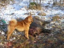 เมื่อทำการล่าสัตว์ขนาดใหญ่สุนัขของสายพันธุ์นี้แสดงให้เห็นถึงความแม่นยำและความระมัดระวังที่น่าทึ่ง ความคล่องแคล่วและว่องไวของคาเรเลียน - ฟินแลนด์นฮัสกี้สามารถห่างจากสัตว์ร้ายที่โกรธแค้นและเสียงที่ดังก้องช่วยให้คุณหันเหความสนใจของหมูป่าจากนักล่า มันมีค่าเพิ่มที่ สุนัขที่ยืนหยัดและกล้าหาญนี้มีความสามารถไม่แตกต่างจากเกมทั่วไปเหมือนบรรพบุรุษของสายพันธุ์ Karelian เก่า