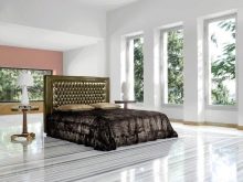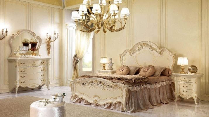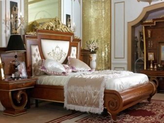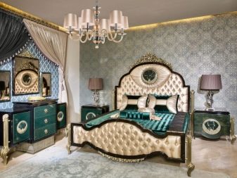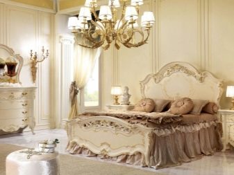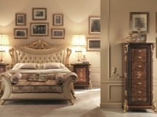 ภาพนี้แสดงให้เห็นว่าห้องนอนพร้อมเฟอร์นิเจอร์ชั้นยอดสามารถดูอย่างไร ความเหนือชั้นกว่าผลิตภัณฑ์ทั่วไปไม่เพียง แต่สร้างจากการปิดทองเท่านั้น แต่ยังรวมถึงการแก้ปัญหาทางเรขาคณิตดั้งเดิมด้วย รูปทรงแฟนซีและผ้าม่านที่สง่างามขาโค้งและเส้นที่ไหลลื่นทำให้คุณอยู่ในแนวทางที่ถูกต้องทันที