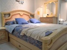 ในห้องนอนที่ดีที่สุดชุดจะค่อนข้างเหมาะสม ลักษณะของห้องขึ้นอยู่กับมันไม่น้อยกว่าบนเตียง แต่ในเวลาเดียวกันท่าเทียบเรือควรเป็นพื้นที่ที่เถียงไม่ได้ มักจะใช้แบบเดี่ยวหรือคู่ ใกล้กับสถานที่ที่จะนอนหลับ จำเป็นต้องวางโต๊ะข้างเตียงหรือตู้ต่ำบนขาที่สง่างาม
