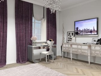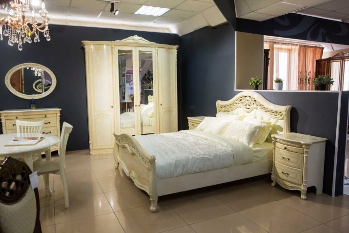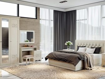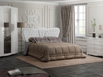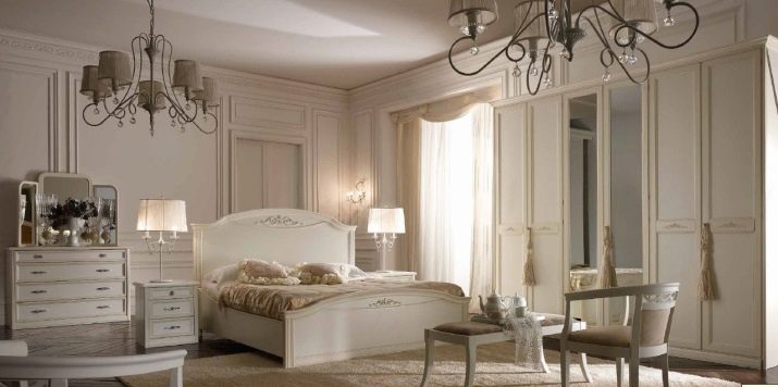 มันจะมีประโยชน์ในการทำความคุ้นเคยกับเฟอร์นิเจอร์หรูหราสีขาวบริสุทธิ์สำหรับห้องนอน สารเติมแต่งดั้งเดิมเป็นตู้ที่สง่างามพร้อมกระจกที่แนบมาและตู้ที่ค่อนข้างกว้างที่มีการแทรกแก้วใสขนาดใหญ่