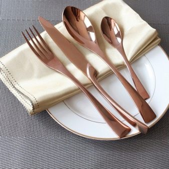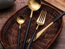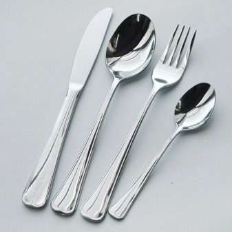 ช้อนและส้อมนั้นถูกจัดอันดับโดยความรุนแรงในมือ พวกเขาควรจะสะดวกในการใช้ ความหนาโลหะปกติคือ 1.5-4 มม. หากเหล็กบางเกินไปก็จะทำงานน้อยมาก ยังคงต้องดูที่ความลึกของการปั๊ม - เกือบแบนตัก 100% หมายถึงผลิตภัณฑ์ในเอเชียที่มีคุณภาพต่ำ ความลึกของช้อนที่ยอดเยี่ยมคือ 7-10 มม. การเลือกใช้มีดคุณสามารถเลือกผลิตภัณฑ์ที่มีทั้งใบมีดที่แข็งและไม่แข็ง ตัวเลือกที่สองนั้นราคาถูกกว่า แต่เหล็กดังกล่าวสลายตัวเร็วกว่า