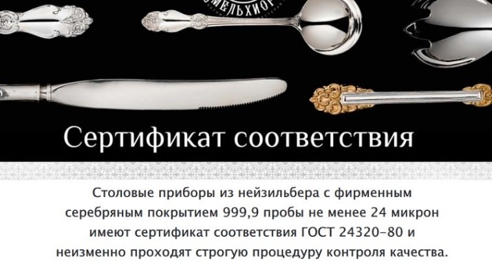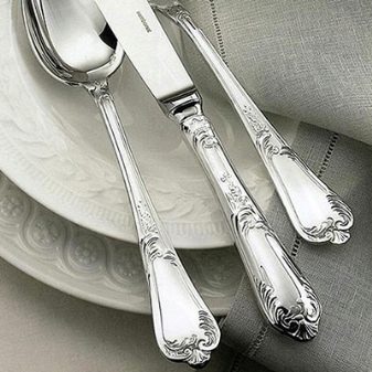 มีด Neisilber ทำด้วยทองเสมอมีชั้นเงินหรือมีสีดำ และหากผู้บริโภคต้องการความคลาสสิกที่ไร้ที่ติพวกเขาควรให้ความสำคัญกับช้อนส้อมสีเงิน พวกเขามักจะรวมอยู่ในชุดพิเศษ การขาดผลิตภัณฑ์เงิน (และทองคำก็เช่นกัน) เป็นภาระที่สำคัญ แต่ถ้าในตอนแรกสำหรับบุคคลที่มีชื่อเสียงและมีชื่อเสียงในฐานะเจ้าของที่มั่นคงตัวเลือกนั้นชัดเจน หากคุณเพียงแค่ต้องการแสดงความปลอดภัยและรสชาติไม่ได้เป็นพื้นฐานคุณสามารถหยุดการเลือกของคุณด้วยอุปกรณ์เคลือบทอง