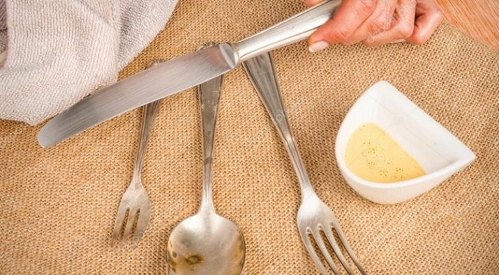 สารละลายน้ำส้มสายชูจะช่วยขจัดคราบที่หลงเหลืออยู่หลังจากอยู่ในน้ำเกลือนาน ๆ หรือคุณสามารถใช้เครื่องล้างจาน คำแนะนำ: เพื่อทำให้ชีวิตของคุณง่ายขึ้นคุณต้องปฏิเสธที่จะซื้อมีดที่มีด้ามพลาสติก ที่ทางแยกของโลหะและพลาสติกสิ่งสกปรกจำนวนมากสะสมอย่างรวดเร็ว ผลิตภัณฑ์ที่มีพลาสติกสามารถล้างได้ในน้ำเย็นหรือน้ำอุ่น (ไม่ร้อน!) น้ำ ทำเช่นเดียวกันกับเครื่องมือที่มีด้ามจับไม้