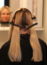 - ในขั้นตอนต่อไปให้ม้วนผมที่อยู่ถัดจากผมที่ถูกตัดออกแล้วและคว้าส่วนเล็ก ๆ ของผมของผมก่อนหน้านี้ (มันจะง่ายกว่าที่จะจัดแต่งทรงผมทั้งหมดตามความยาวหนึ่ง)