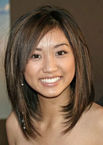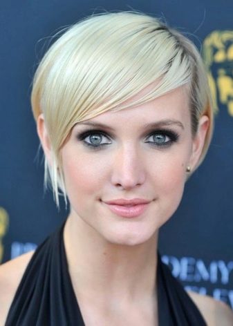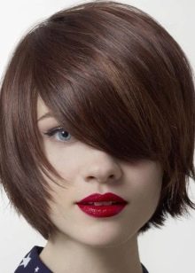 - รุนแรง มันเกี่ยวข้องกับการเน้นพื้นที่ส่วนบนของใบหน้า ในกรณีนี้การเลือกเส้นแนวเฉียงแบบยาวโดยไม่ต้องใช้เทคโนโลยีที่สำเร็จการศึกษานั้นเหมาะสม ทรงผมที่โดดเด่นและมีประสิทธิภาพที่สุดเช่นนี้จะมองไปที่ผมของเฉดสีอ่อน
