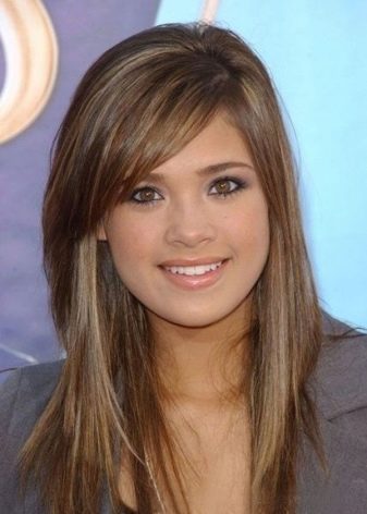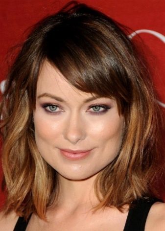 สำหรับเด็กผู้หญิงที่มีรูปหน้าเป็นรูปสามเหลี่ยมขอบที่มีความลาดเอียงที่มีความคมชัดและมีความยาวที่ค่อนข้างกว้าง ตัวเลือกที่ดีที่สุดคือเมื่อปลายเส้นปิดหนึ่งคิ้ว เทคนิคนี้จะสร้างความสมดุลที่จำเป็นระหว่างคางคมที่แคบและหน้าผากกว้าง