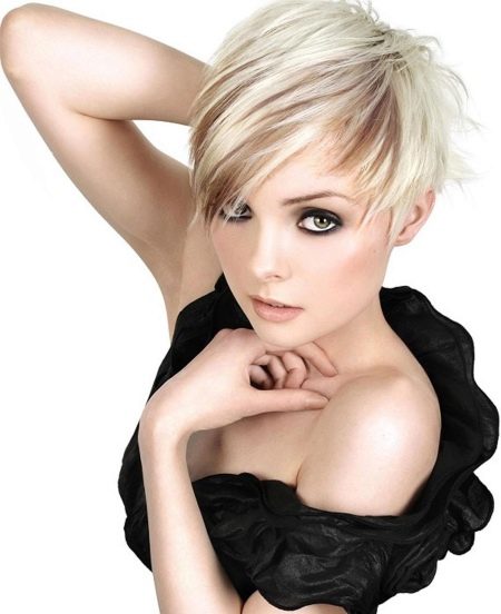 - หญิงสาวที่ไม่กลัวที่จะทดลองนั้นสมบูรณ์แบบ ตัดผมสั้นนางฟ้าพิเศษรวมกับเรียบเฉียง. ในขณะเดียวกันเกลียวของเธอไม่จำเป็นต้องมีเงาแม้แต่คู่เดียวทำให้ภาพมีความกล้าหาญเล็กน้อย