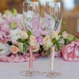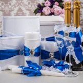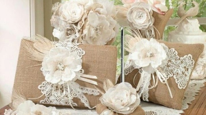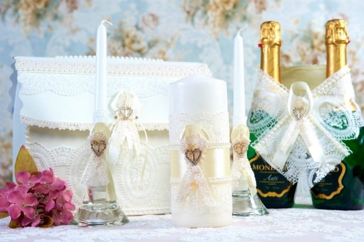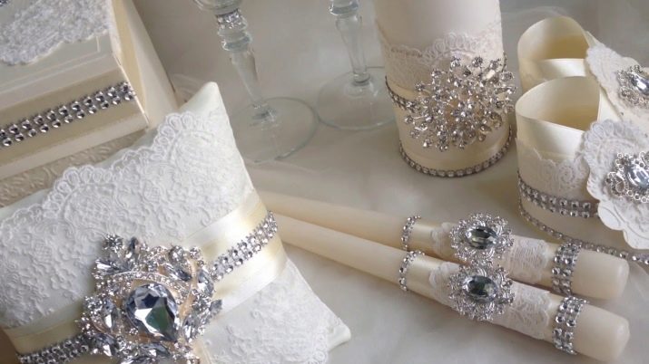 อุปกรณ์จัดงานแต่งงานที่ต้องทำด้วยตัวเองมักจะเก็บรักษาไว้เป็นเวลาหลายปีเพื่อเป็นของที่ระลึกในงานกาล่า ไม่ใช่เรื่องยากที่จะตระหนักถึงความคิดมากมาย แต่พวกเขาจะกลายเป็นไฮไลท์ของงานแต่งงานและจะไม่เป็นเหมือนคนอื่น ความคิดที่สวยงามจะดำเนินการชุดของวัตถุในรูปแบบเดียว: หมอนสำหรับแหวน, แว่นตาของคู่บ่าวสาว, ขวดแชมเปญและถุงเท้าของเจ้าสาว คุณสามารถสร้างไอเท็มเหล่านี้โดยใช้ลูกไม้หรือผ้าซาตินเดียวกันซึ่งจะสร้างความสามัคคีในภาพและเน้นสไตล์ของงานแต่งงาน