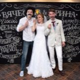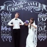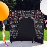 กระดานชนวนธรรมดาสามารถทำหน้าที่เป็น photozone นี่จะเป็นการตัดสินใจดั้งเดิม: แขกและญาติสามารถเขียนแสดงความยินดีและความปรารถนาสำหรับคู่บ่าวสาวบนกระดาน และถ่ายภาพในขั้นตอนการเขียนและพื้นหลังของจารึกที่ทำไว้แล้ว เพียงแค่ตกแต่งกระดานรอบปริมณฑลด้วยลูกหรือดอกไม้ใส่ดินสอสีไว้ข้างๆพวกเขาในตะกร้าที่สวยงาม - โซนภาพถ่ายของคุณพร้อมแล้ว