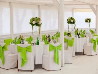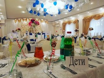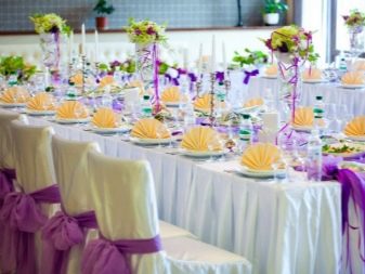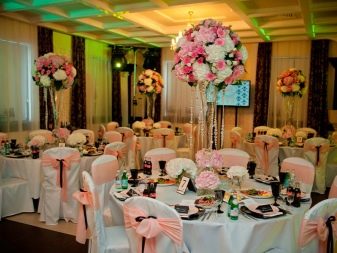 คนหนุ่มสาวมักให้ความสนใจกับการออกแบบห้องจัดเลี้ยง หลังจากนั้นก็มีส่วนที่เกิดขึ้นในตอนเย็นแขกและญาติทุกคนรวมตัวกันที่นั่นเพื่อแสดงความยินดีกับคู่บ่าวสาว ในการตกแต่งร้านอาหารคุณสามารถทำการตกแต่งตกแต่งด้วยตัวคุณเอง