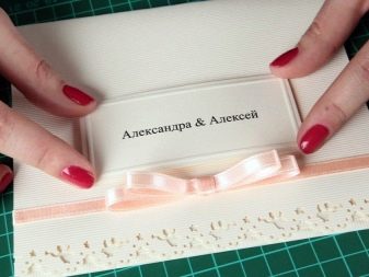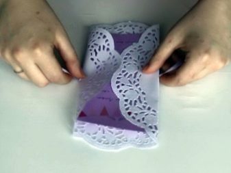 ตัดซองจดหมายจากกระดาษแข็งหรือกระดาษหนาซึ่งคุณจะต้องแนบคำเชิญ ขนาดของมันควรจะเป็นแบบที่คำเชิญจะเข้ากันได้อย่างอิสระ ตกแต่งซองจดหมายหากต้องการด้วยริบบิ้นลูกไม้หรือนัวเนียจากซาติน, ลูกปัดหรือก้อนกรวด