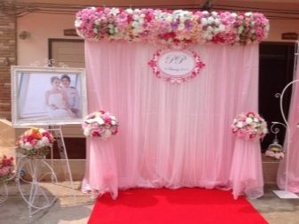 ด้วยมือของคุณเองคุณสามารถทำมาลัยผ้าหรือกระดาษสำหรับพื้นหลังของพื้นที่ถ่ายภาพ การตกแต่งช่อดอกไม้ยังสามารถนำความสุขมาให้เจ้าสาว: บอนไซขนาดเล็กจากริบบิ้นม้วนและลูกปัดง่ายต่อการเติมเต็มจะมีความปรารถนา เครื่องประดับสไตล์ Kanzashi ดูน่าตื่นตาตื่นใจในโซนภาพถ่าย ดังนั้นคุณสามารถทำดอกไม้มาลัยพวงหรีดสำหรับเพื่อนเจ้าสาว