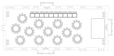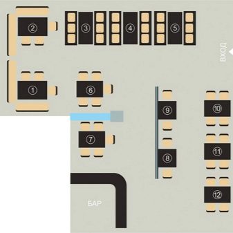 บนแผ่นงานของรูปแบบที่ต้องการแผนผังจะใช้แผนสำหรับการจัดตารางในห้องโถง ตารางสามารถกำหนดในรูปแบบของวงกลมหรือสี่เหลี่ยม (ขึ้นอยู่กับที่อยู่ในร้านอาหาร) ระบุหมายเลขของพวกเขา บนสติกเกอร์ติดด้วยตนเองมีหลายสีเขียนชื่อและนามสกุลของแขกและวางไว้บนแผนภาพตามที่คุณต้องการที่นั่งแขก แนวคิดดังกล่าวเรียบง่ายและเป็นต้นฉบับ