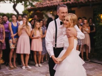 แน่นอนว่าประเภทของการเต้นรำที่ได้รับความนิยมมากที่สุดสำหรับลูกสาวและพ่อคือช้าแต่เมื่อไม่นานมานี้มันได้กลายเป็นแฟชั่นมากขึ้นเรื่อย ๆ ในการเต้นรำที่สนุกสนานและก่อความไม่สงบสำหรับการผสมเพลงสมัยใหม่ การเคลื่อนไหวสามารถเลือกได้ง่ายมากและเมโลดี้ที่ร่าเริงจะพาแขกรับเชิญไปที่ฟลอร์เต้นรำแน่นอนคุณต้องฝึกฝนล่วงหน้าเพื่อให้การแสดงในงานฉลองสมบูรณ์แบบ