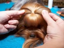 - กรูมมิ่งทำการตัดผมครั้งแรกบางทีเจ้าของอาจจะเรียนรู้ที่จะตัดลูก แต่เป็นครั้งแรกที่พาสุนัขไปหาผู้เชี่ยวชาญ สูงถึง 7-8 เดือน Yorkers ไม่ต้องการทรงผมแบบจำลองถูกสุขลักษณะและควรตัดผมแบบจำลองทุก 2-3 เดือน แต่ถ้าสุนัขเป็นผู้มีส่วนร่วมในการจัดนิทรรศการมันอาจจะบ่อยกว่า;