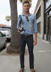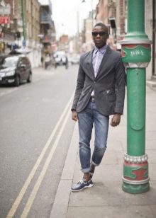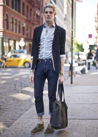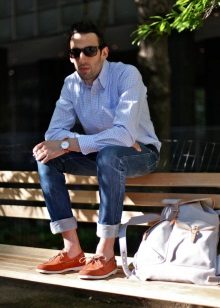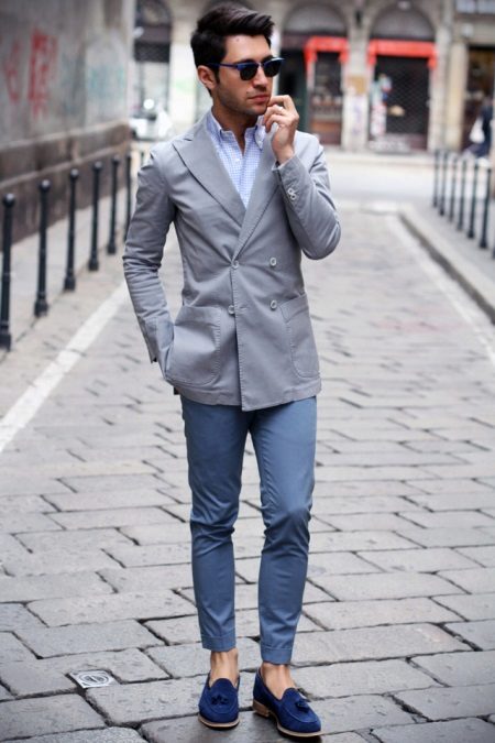 รูปภาพของผู้ชายที่มี siders ด้านบนโดดเด่นตามสไตล์และความสะดวก ด้วยการแต่งกายมันเป็นไปได้ค่อนข้างที่คนธรรมดาจะปรากฏตัวในวงสังคมชั้นนำในที่ทำงาน ด้วยกางเกงขายาวสีเทาน้ำเงินที่เรียบง่ายเสื้อเชิ้ตกระดุมสองแถวและเสื้อเชิ้ตลายตารางหมากรุกรองเท้าสีน้ำเงินเข้มดูมีเกียรติและเป็นที่ชอบมาก