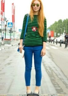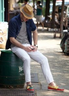 หากผลงานมีความคิดสร้างสรรค์แล้วรองเท้าฤดูร้อนก็มีชีวิตชีวามากกว่านี้ หนังด้านบนสีไตรรงค์เพิ่มในช่วงฤดูร้อนดูความคิดริเริ่มและมีสีสัน รองเท้าแฟนซีโดดเด่นด้วยพื้นหลังของโทนสีเทา - น้ำเงินที่เข้มงวดของชุดที่เหลือและส่วนแทรกของหนังสีขาวที่อยู่ด้านบนนั้นสอดคล้องกับเสื้อเชิ้ตสีขาว ภาพดูน่าสนใจและโบฮีเมียน