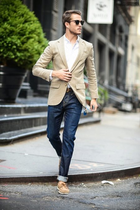 เมื่อรวมกับกางเกงยีนส์ผู้สวมใส่ที่ดีจะดูไม่มีที่เปรียบ สีเบจที่มาพร้อมกับแจ็คเก็ตกีฬาที่บางเฉียบในสีเดียวกัน กางเกงยีนส์สีน้ำเงินคลาสสิคทำให้ลุคของคุณดูสมบูรณ์แบบ