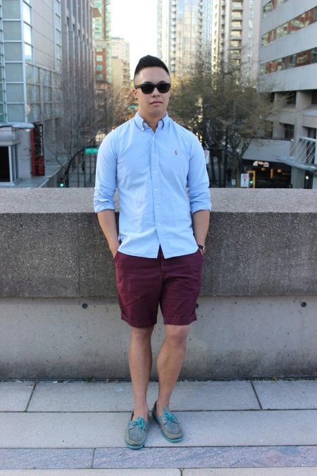 siders ยอดนิยมดูดีกับกางเกงขาสั้นใด ๆ ในภาพนี้ความสำคัญอยู่ที่กางเกงขาสั้นสีเบอร์กันดีและรองเท้าทำขึ้นเสื้อเชิ้ตสีน้ำเงิน