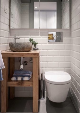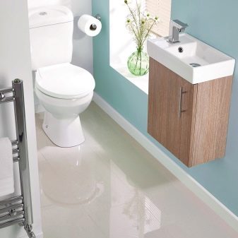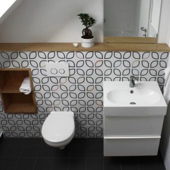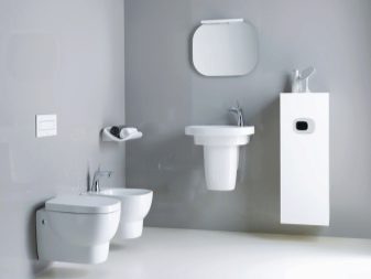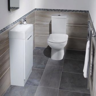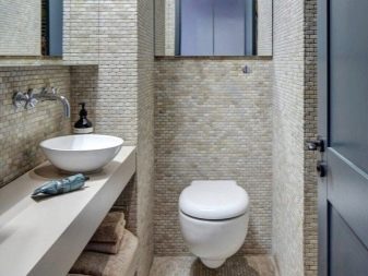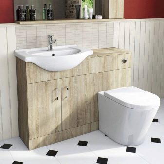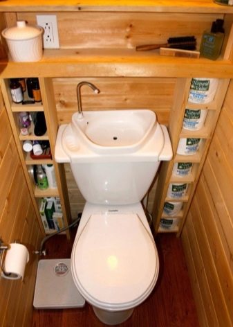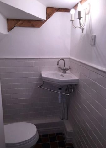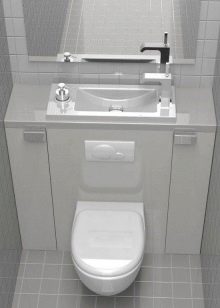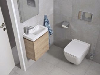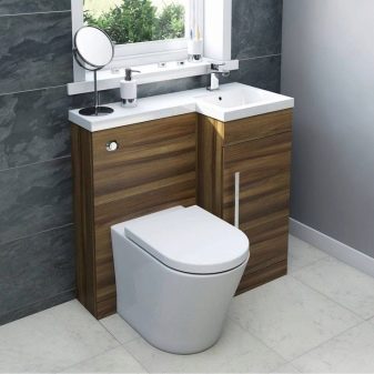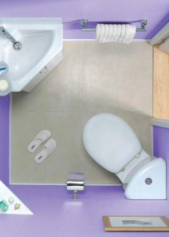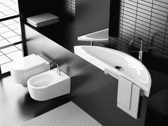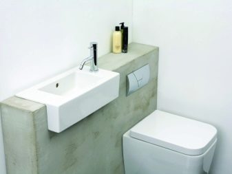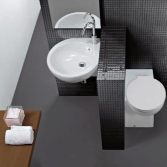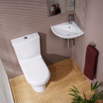 ควรวางอ่างขนาดเล็กที่ซื้อในห้องน้ำขนาดเล็กอย่างเหมาะสม ดังนั้นตัวเลือกมุมสามารถติดตั้งได้ในมุมฟรี โครงสร้างที่ถูกระงับสามารถติดตั้งได้ไม่เพียง แต่ใกล้กับผนังฟรี แต่ยังติดตั้งเหนือโถชักโครก วิธีแก้ปัญหาแบบนี้อาจดูผิดปกติ แต่มันจะเป็นวิธีที่ดีที่สุดเมื่อต้องจัดการพื้นที่เล็ก ๆ ในห้องน้ำ