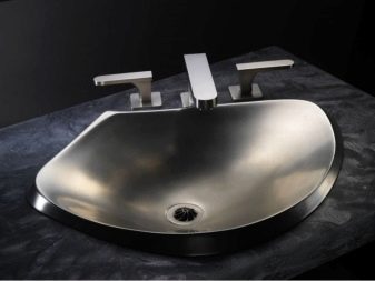 - โลหะ. ของวัตถุดิบเหล่านี้มักจะทำ sinks ครัว แต่ washstands ห้องน้ำขนาดเล็กมักจะน้อยกว่า อย่างไรก็ตามในการขายคุณยังสามารถหารูปแบบของการประปา มันจะเป็นทางออกที่สมบูรณ์แบบสำหรับสภาพแวดล้อมสไตล์ร่วมสมัยเช่นเทคโนโลยีชั้นสูง
