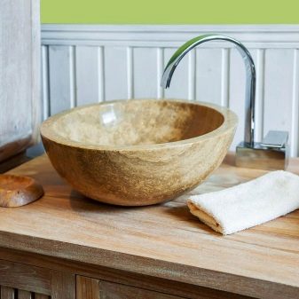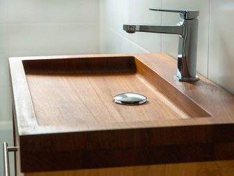 อ่างล้างมือทำด้วยไม้หายาก แต่แน่นอนว่าพวกเขาจะหาสถานที่ของพวกเขาในรูปแบบเชิงนิเวศหรือลอฟท์ ก่อนที่จะซื้อเช่นรูปแบบที่ผิดปกติ คุณสามารถปรึกษานักออกแบบที่มีประสบการณ์ซึ่งจะบอกวิธีการออกแบบตกแต่งภายในที่ดีที่สุดด้วยอ่างล้างหน้าไม้