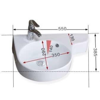 เส้นผ่านศูนย์กลางของอ่างล้างหน้าที่ทันสมัยในกรณีที่หายากเกิน 0.5 เมตร. เห็นเป็นตัวเลขดูเหมือนว่า: ความกว้าง - 30-55 ซม. และความลึก - 20-55 ซม.