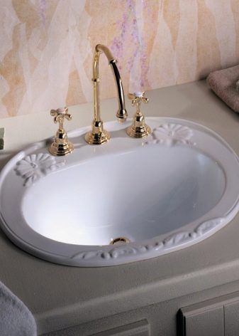 หนึ่งในความนิยมและแพร่หลายในช่วงหลายปีที่ผ่านมายังคงเป็นอ่างล้างจานแบบคลาสสิกที่มีขอบ แต่พันธุ์เหล่านี้มีมูลค่าการซื้อเฉพาะในกรณีที่ ถ้าห้องน้ำกำลังสองทำให้สามารถเติมพื้นที่ใต้อ่างล้างจานได้โดยไม่ทำให้สถานการณ์แออัดเกินไป มีการติดตั้ง washstands ขนาดเล็กใน nightstands พิเศษซึ่งมีบทบาทไม่เพียง แต่สนับสนุนชามเท่านั้น แต่ยังซ่อนการสื่อสารทั้งหมดที่มาถึงอ่างล้างจาน