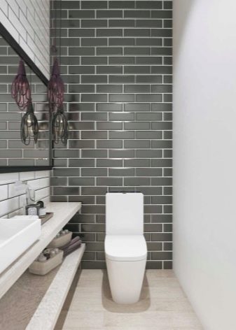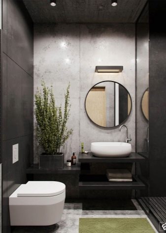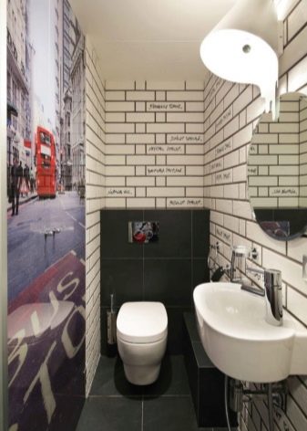 ดูดั้งเดิมมากและสดใหม่ ห้องน้ำตกแต่งในสไตล์ลอฟท์หรือในเมือง ผนังสามารถตกแต่งด้วยอิฐเลียนแบบในครึ่งบนและด้านล่างง่ายต่อการจัดวาง - ใส่กระเบื้องสีดำด้าน ในสภาพแวดล้อมดังกล่าวซึ่งดูไม่สำคัญผนังด้านใดด้านหนึ่งสามารถเน้นและตกแต่งด้วยภาพที่สวยงามของถนนในเมือง ในสภาพแวดล้อมเช่นนี้อ่างรูปกลมเล็กสีขาวจะพบที่ของมันเช่นเดียวกับห้องน้ำสีขาวคลาสสิกที่มีถังเก็บน้ำที่ซ่อนอยู่