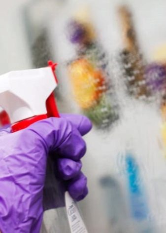 ก่อนอื่นคุณต้องใส่ใจกับประตูและกำแพง พวกเขาสามารถเป็นแก้วหรือพลาสติก กระจกค่อนข้างทนต่อการใช้สารเคมีในครัวเรือนดังนั้นการเลือกใช้ผลิตภัณฑ์ที่มีคุณภาพสูงสำหรับการดูแลนั้นกว้างมาก