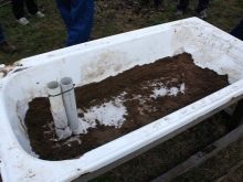 - การเลือกสถานที่คุณจะต้องขุดคูที่สอดคล้องกับขนาดของอ่างอาบน้ำโดยคำนึงว่ามันถูกขุดลงบนพื้นอย่างสมบูรณ์และขอบของมันอยู่ในระดับพื้นดิน