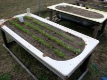 มันทำให้รู้สึกถึงการใช้ห้องอาบน้ำไม่เพียง แต่เป็นสวนดอกไม้ - มันสามารถใช้เหตุผลมากขึ้น ตัวอย่างเช่นทำมันเอง สร้างเตียงจากมัน สำหรับเรื่องนี้ทรายหยาบชิ้นส่วนของอิฐหักก้อนกรวดขณะที่การระบายน้ำจะถูกวางไว้ที่ด้านล่าง ปุ๋ยหมักที่เน่าและดินสวนที่มีปุ๋ยแร่อยู่ด้านบน คุณสามารถปลูกบวบและแตงกวาเพื่อสร้างสภาวะเรือนกระจกคุณจะต้องสร้างการสนับสนุนขนาดเล็กเพื่อใช้กับการเกษตรหรือวัสดุคลุมอื่น ๆ