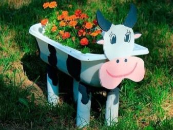 - จากรถถังเก่าที่คุณสามารถทำได้ ตลกและ งานฝีมือและรูปปั้นในสวน - สำหรับสิ่งนี้คุณต้องวางภาชนะไว้บนขายาวแก้ไขปากกระบอกปืนของสัตว์ (วัวม้าลาย) ที่ขอบด้านหนึ่งและวางกระถางดอกไม้ขนาดเล็กที่มีดอกดาวเรืองและแพนซี่ข้างใน