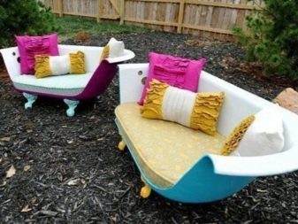 อ่างอาบน้ำที่ไม่จำเป็นจะทำให้โซฟาที่ยอดเยี่ยมซึ่งสามารถทิ้งไว้ในเว็บไซต์หรือตกแต่งด้วยระเบียงห้องนั่งเล่นในบ้าน เฟอร์นิเจอร์ดังกล่าวจะดูน่าตื่นตาตื่นใจถ้าออกแบบอย่างเหมาะสม แต่ก่อนอื่นคุณต้องตัดกำแพงด้านหนึ่งของถังอย่างระมัดระวัง