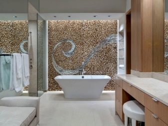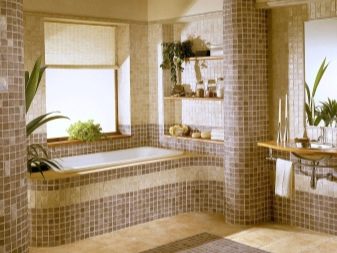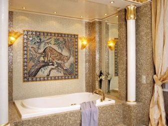 โมเสกนั้นดีเหมือนสำเนียงในห้องน้ำ แต่มันก็ไม่พึงปรารถนาที่จะวางทับผนังทั้งหมดด้วย สิ่งนี้จะสร้างเอฟเฟกต์ระลอกคลื่นและโมเสคเองก็ไม่มีความหมาย คุณสามารถซื้อชุดที่มีการติดตั้งชุดรูปแบบที่จะนำบรรยากาศพิเศษในการตกแต่งภายในของห้องน้ำ คุณสามารถทำโมเสกบริเวณและหน้าจอของอ่างอาบน้ำผนังของห้องอาบน้ำฝักบัวขอบหรือที่มีอยู่