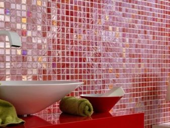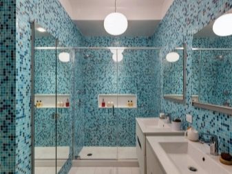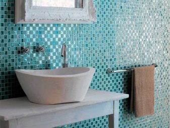 วันนี้กระเบื้องแก้วที่ทนทานมากขึ้นถือเป็นหนึ่งในโซลูชั่นพิเศษสำหรับการตกแต่งผนังห้องน้ำ เคลือบนี้ทนต่อการทำความสะอาดบ่อยครั้งมันเติมเต็มการตกแต่งภายในด้วยความรู้สึกของแสงและอากาศ ขนาดของแม่พิมพ์สามารถเป็นได้ทั้งโมเสกขนาดเล็กหรือใหญ่และใหญ่