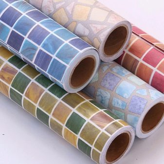 ขึ้นอยู่กับประเภทของฐานผนังห้องน้ำสามารถติดด้วยตนเองได้ นี่คือฟิล์มที่พันเป็นม้วนที่มีความกว้างต่างกันซึ่งมีฐานที่เหนียว พวกเขาทำจากโพลีไวนิลคลอไรด์พื้นผิวด้านหน้ามีลวดลายตกแต่ง