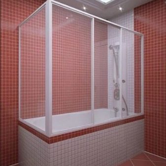 พาร์ติชั่นดังกล่าวใช้ร่วมกับห้องน้ำที่มีรูปทรงสี่เหลี่ยมที่คุ้นเคย พวกเขาจะติดตั้งอย่างถาวร ตัวเลือกบางอย่างแบ่งออกเป็นหลายส่วน พวกเขาถูกจัดทำโดยโปรไฟล์โลหะ