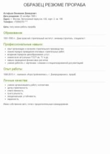 - Ang resume ng tagabuo ay lubos na madaling makita mula sa isang visual na pananaw, dahil ang dokumento ay maayos at maayos na nakabalangkas, at mayroon ding lahat ng kinakailangang mga seksyon. Ang mga subheadings ay naka-highlight sa kulay, na pinapasimple din ang proseso ng pagbasa.
