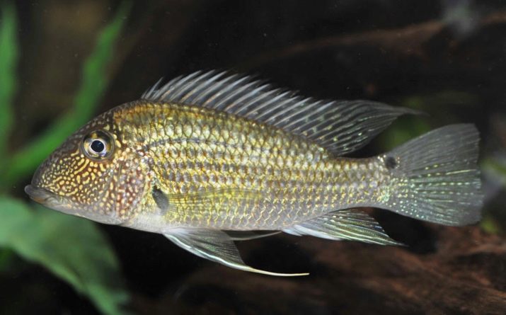 Akvaryum koşullarında, bu balıklar 15 cm'ye kadar büyüyebilir, vücutları kırmızı başlı jeofagusa benzer ilginç bir şekle sahiptir, ancak sırt karından daha fazla kavislidir. Bu türün bireylerinin vücut rengi zeytin veya gri-kahverengi olabilir.
