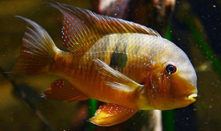 Bunlar güzel orta boy balıklardır. Uzunluğunda erkekler 9-10 cm'ye kadar ve dişiler - 6-8 cm'ye ulaşabilir Erkeklerin ayırt edici bir özelliği vardır - oksipital kambur. Bireylerin vücut rengi kırmızı-kahverengidir, nadir mavi lekeler vardır. Onların sayısı kuyruk ve yüzgeçlerde hakimdir.