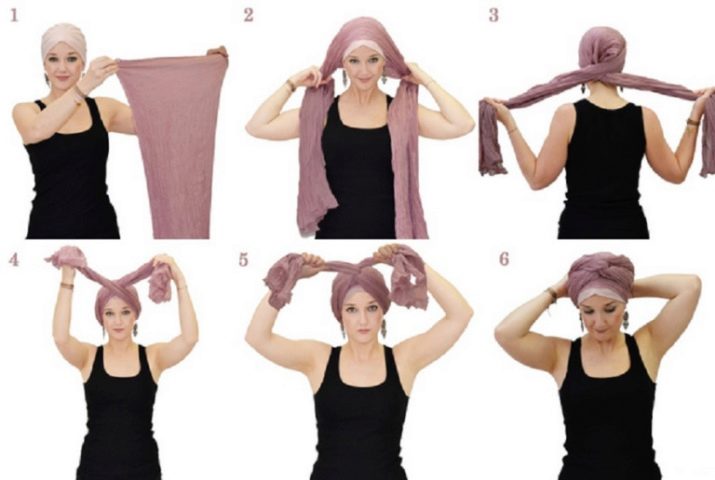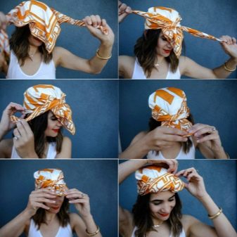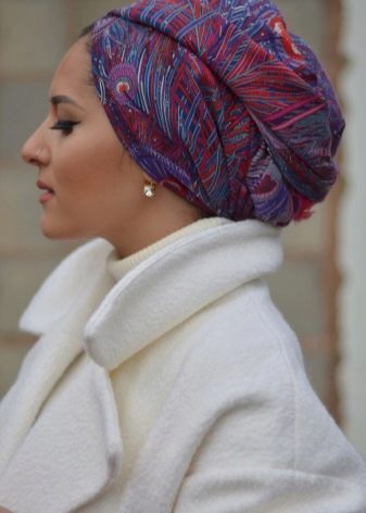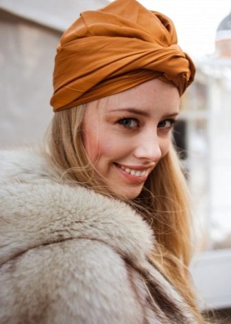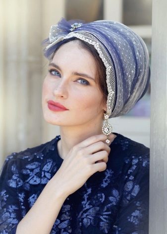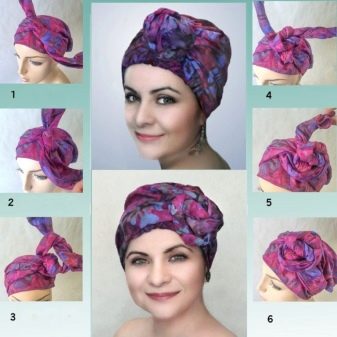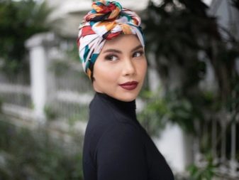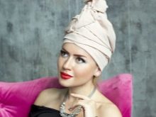 Türban, çok yönlülüğü ile ayırt edilen bir başlıktır. Kumaş ve renge bağlı olarak, hafta içi ve tatil günlerinde giyilebilir. Ana şey, dokuyu kafadaki doğru ve güvenilir bir şekilde sabitlemektir.