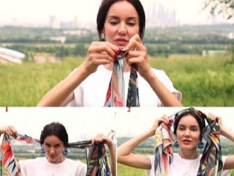 Böyle bir türban elde etmek için farklı renklerde iki şal kullanmanız gerekir. Önemli bir nokta - bu amaçla hafif kumaşlardan yapılmış eşarpları seçmek daha iyidir, aksi takdirde düğümlü düğümler çok zarif olmayacaktır. Aşağıdaki adımların yapılması gerekir: