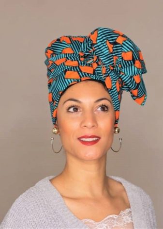 Afrika türbanı egzotik bir görünümü tamamlamak için çok uygundur. Ancak unutulmamalıdır ki daha çok böyle bir seçenek siyah kadınlar veya İskandinav görünümüne sahip olanlar için uygundur.