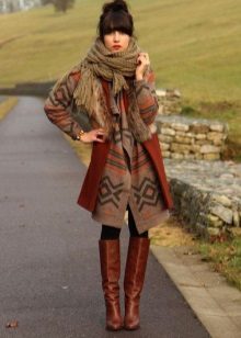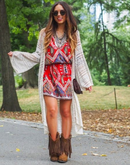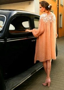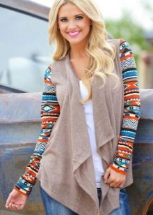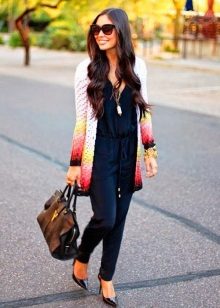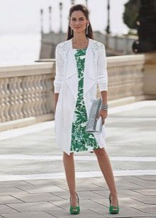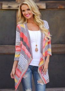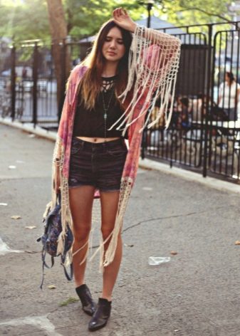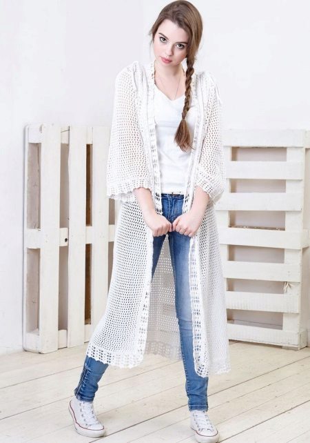 Gevşek bir ajur hafif ceket, bir akşam yaz yürüyüşü için idealdir. Bu ceket, parlak bir etnik baskıya sahip tunik bir elbise ile mükemmel bir şekilde birleştirilmiştir.
